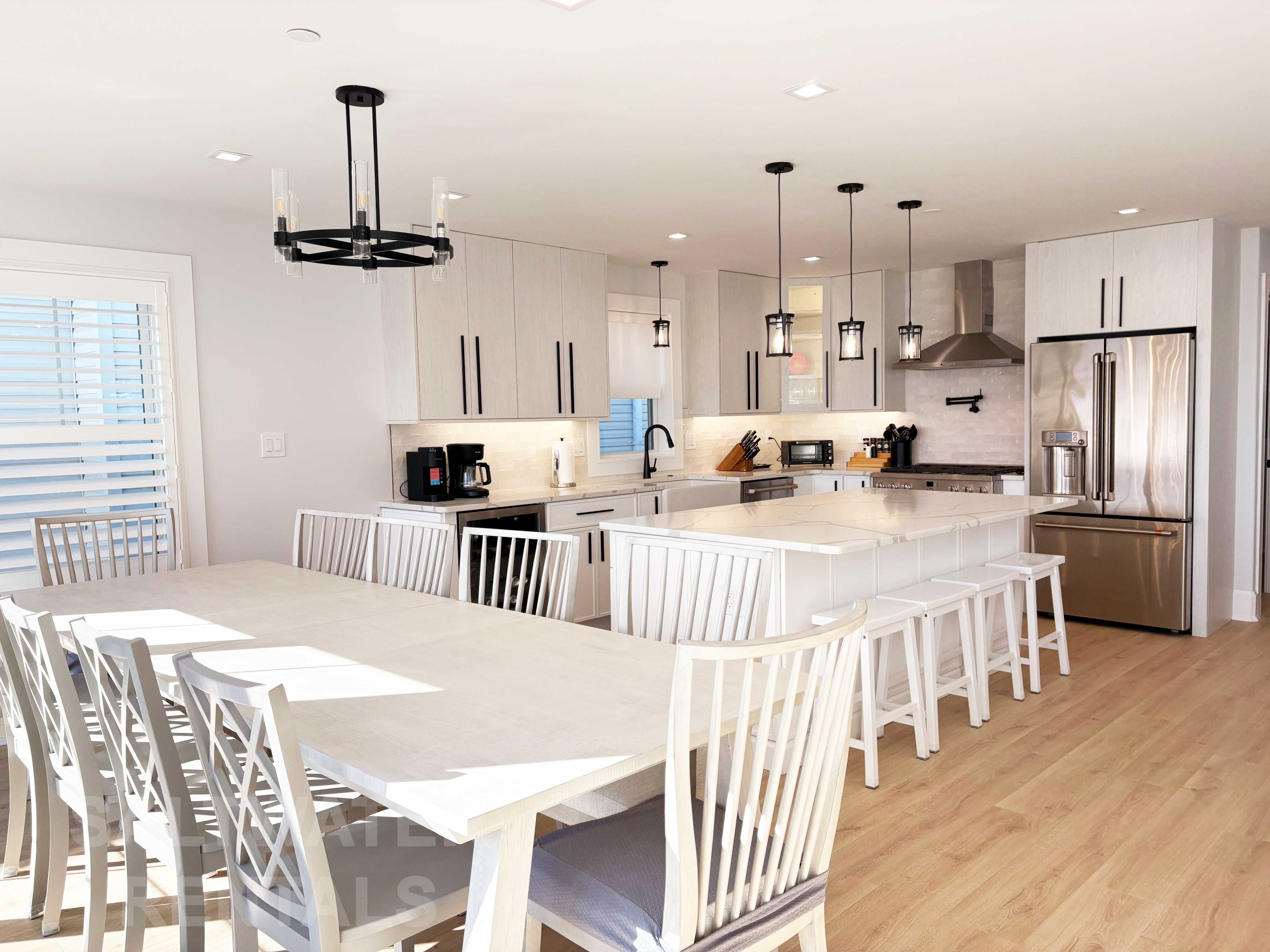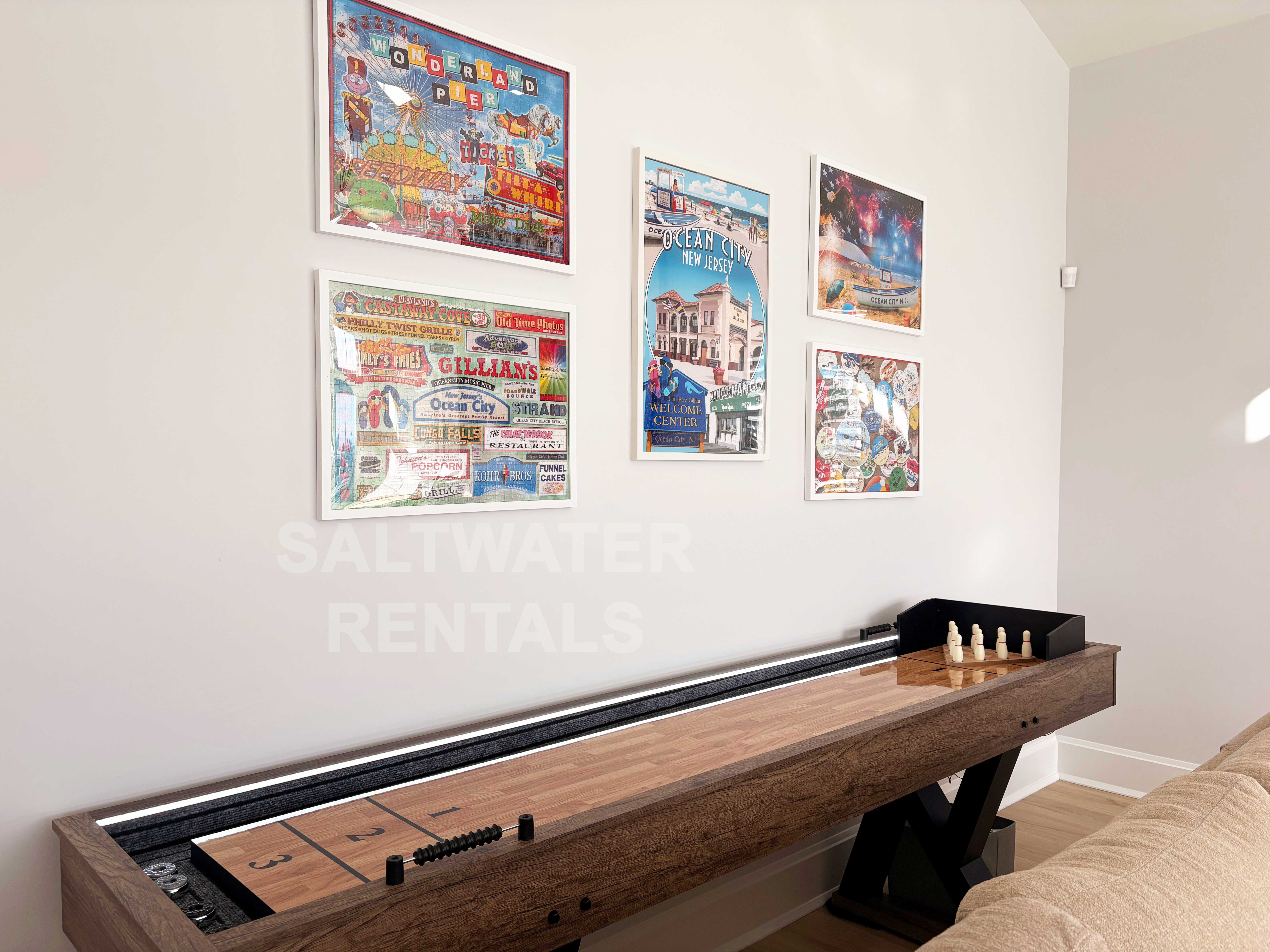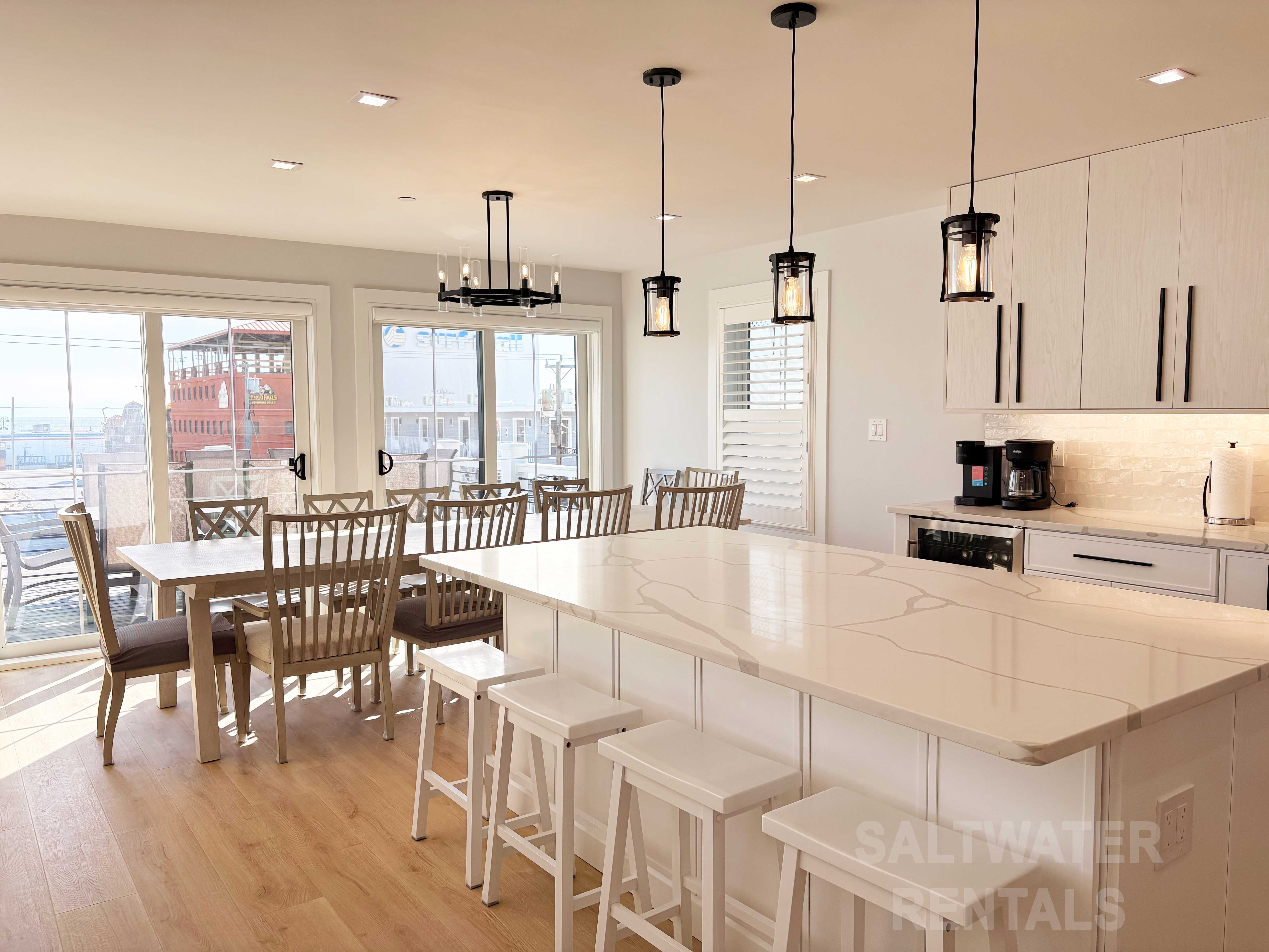 Wake up to breathtaking sunrise views from the front deck or your private rooftop deck, and enjoy all-day sun and sea breezes. Inside, the home features an expansive open-concept living room, dining area, and kitchen, offering plenty of space for everyone to relax and reconnect. Rainy day? No problem—enjoy a friendly game on the shuffleboard table, a unique perk rarely found in Ocean City rentals.